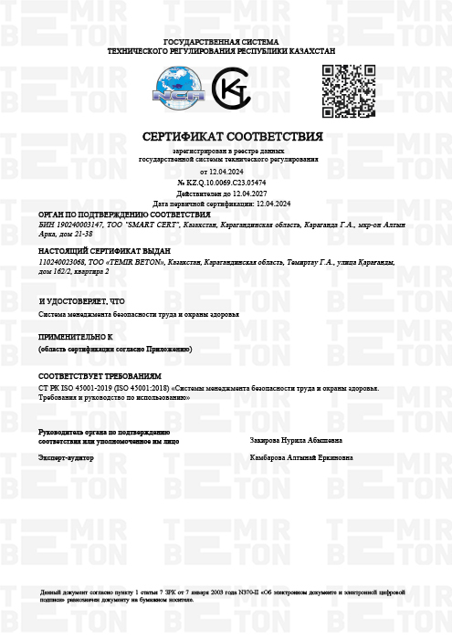 Сертификат соответствия. Система менеджмента безопасности труда и охраны здоровья.