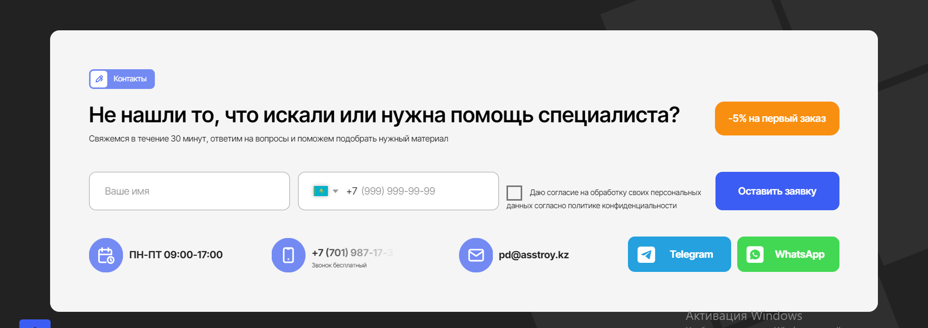 Свяжитесь с нами через ватсап, телефон или по электронной почте. Мы проконсультируем вас, подберем подходящий товар испредоставим информацию о ценах и сроках доставки.